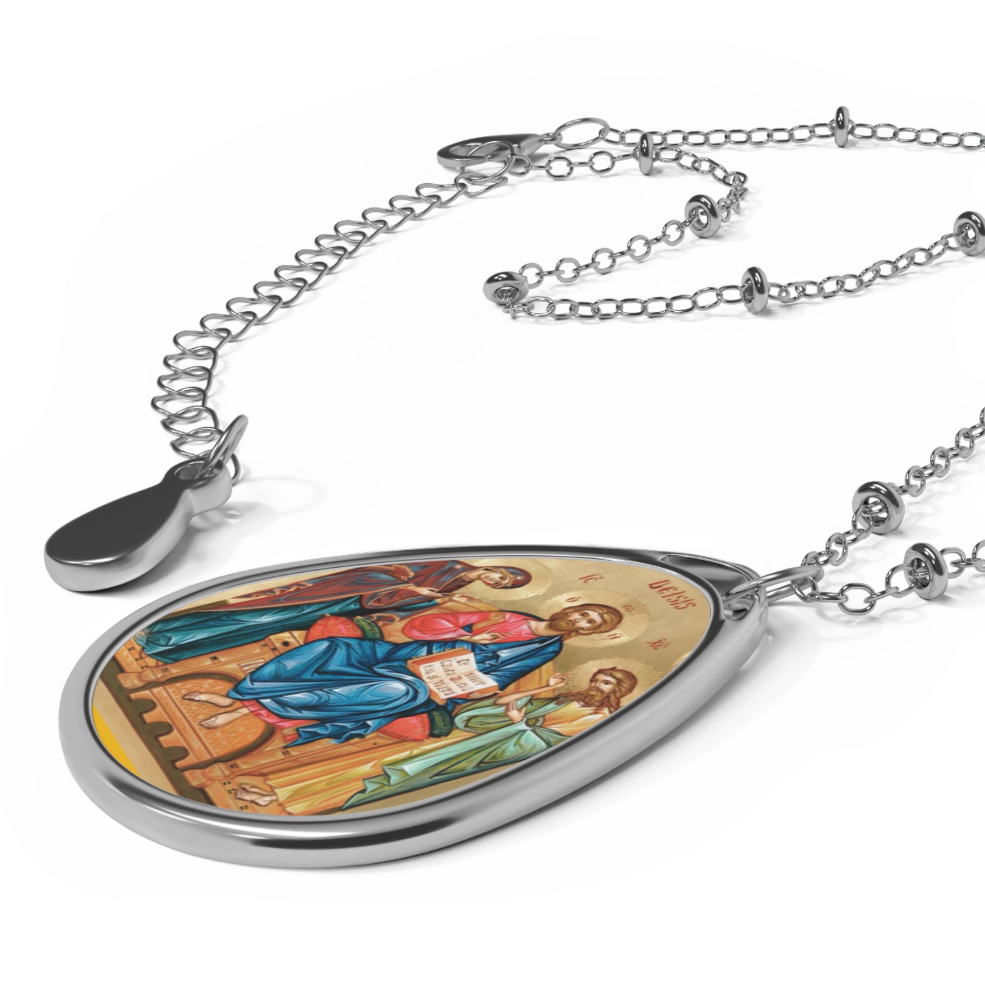 DEISIS- Jesus Christ on the Throne- Elegant Oval Necklace with Sacred Icon Charm - Spiritual Jewelry