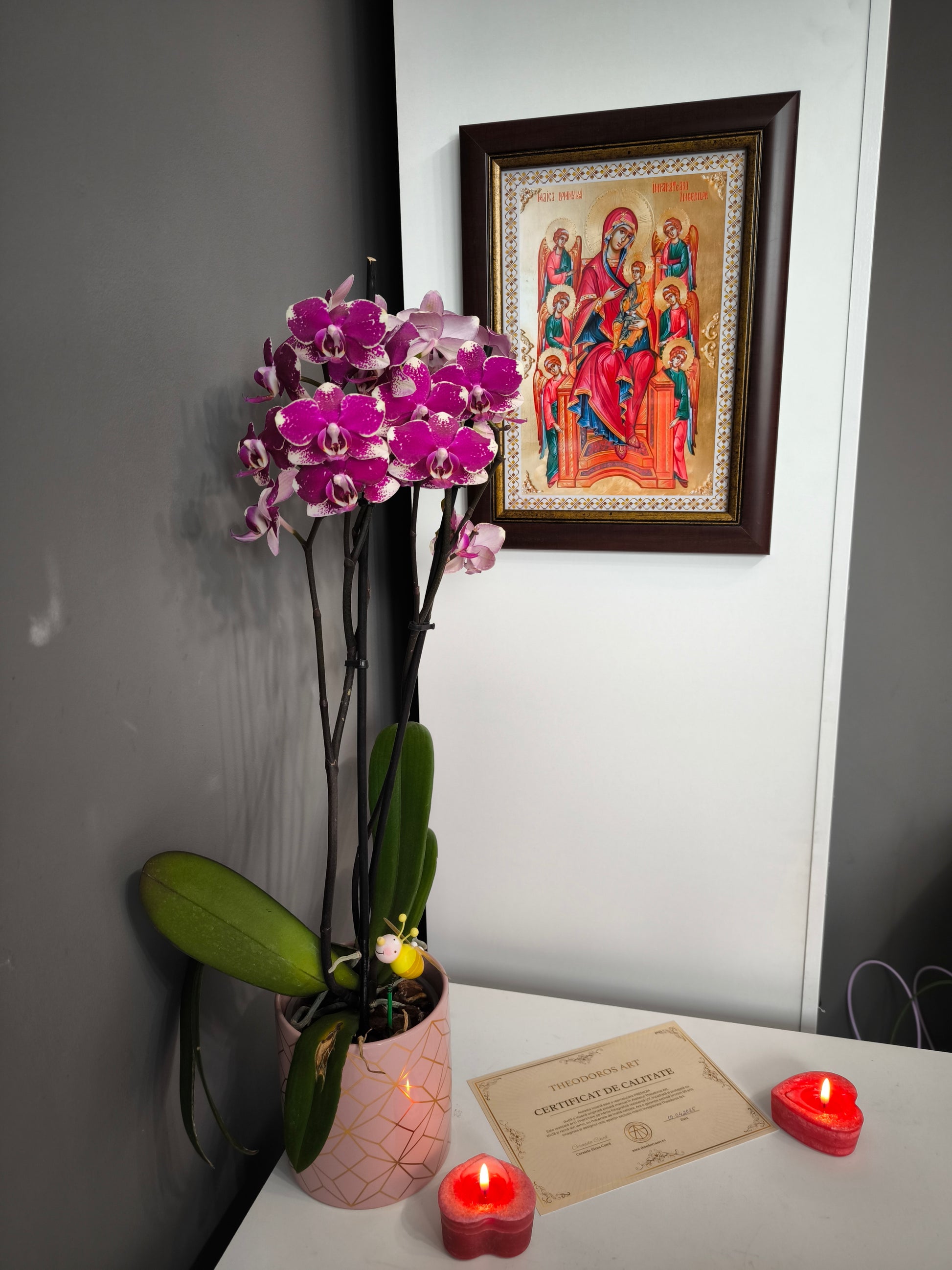 Realizată cu atenție la detalii, această icoană este unica prin designul special creat si calitatea materialelor. Ideală pentru a aduce liniște și binecuvântare în casa ta sau pentru un dar de suflet pentru cei dragi.